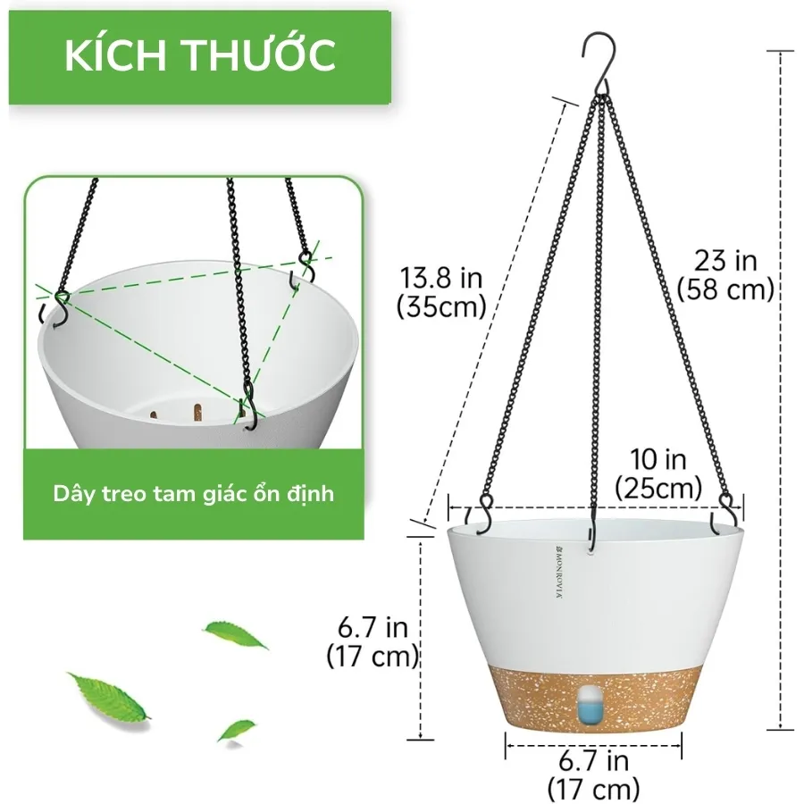 MONROVIA XIN GIỚI THIỆU ĐẾN BẠN MÃ SẢN PHẨM - CHẬU TREO TRỒNG CÂY TỰ TƯỚI THÔNG MINH